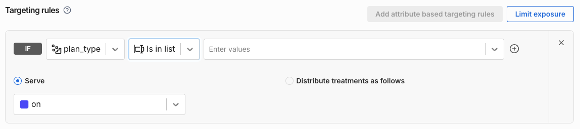1. Complete the targeting rule by filling in the values to match against and choosing the treatment(s) to serve.