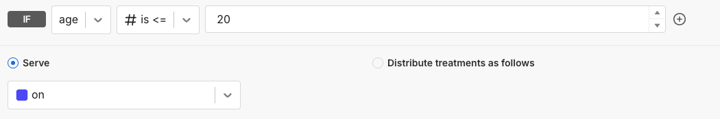 Serve the on treatment for users with custom attribute age greater than or equal to 20: