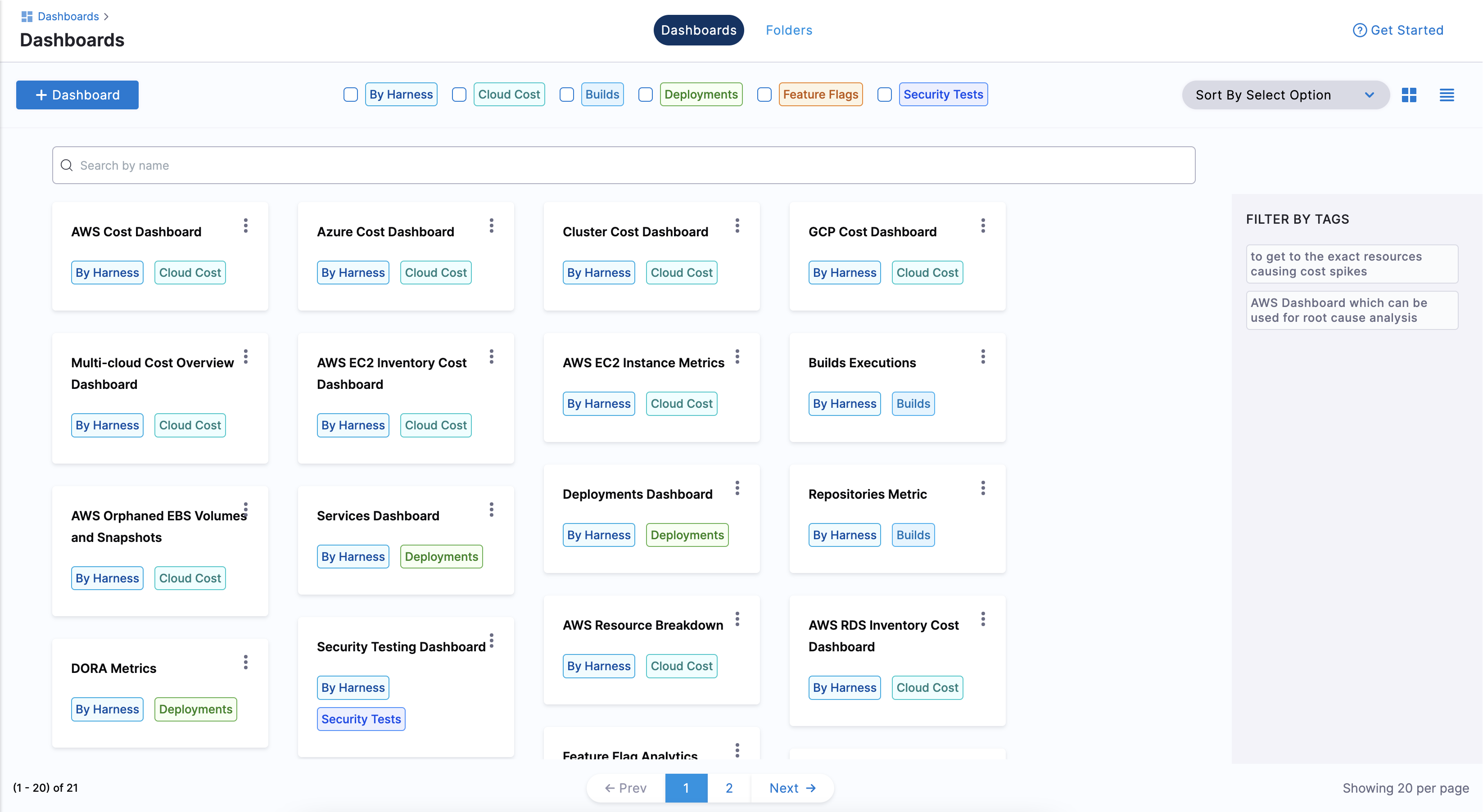 Harness provides the following out-of-the-box dashboards across its products: