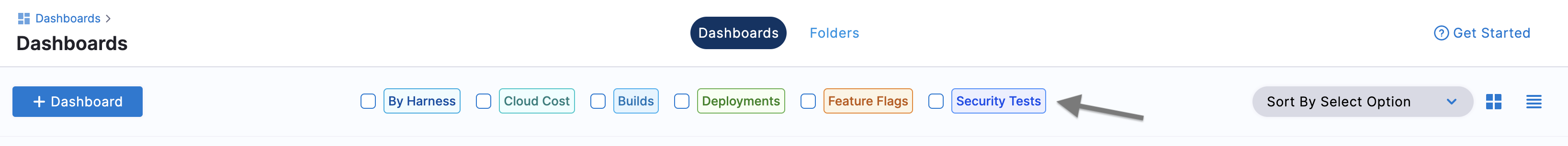 To sort these dashboards select one of the following: