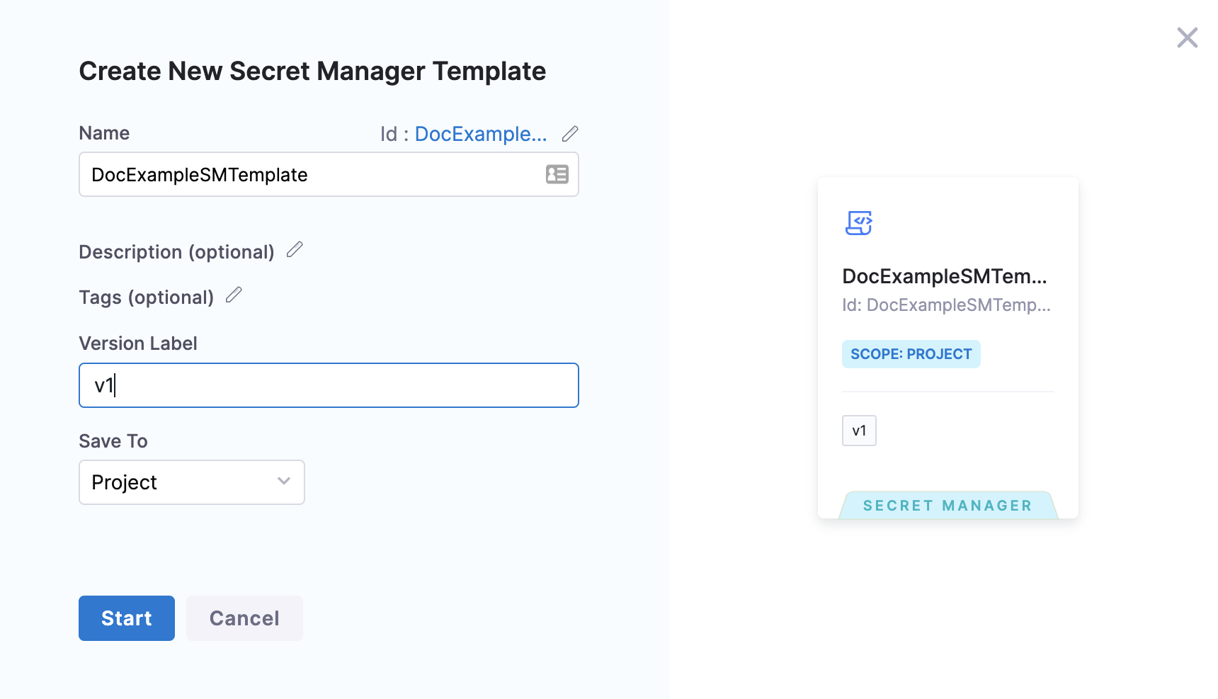 You can create a secret manager template in the account, org, or project scope.​ This topic shows you how to create a secret manager template at the project scope.​
