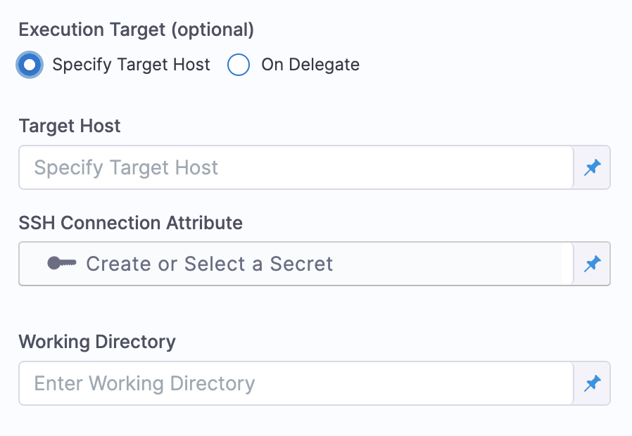 If you want to run the shell script on a target host and not on the Harness Delegate, you must first create the required connection attributes.