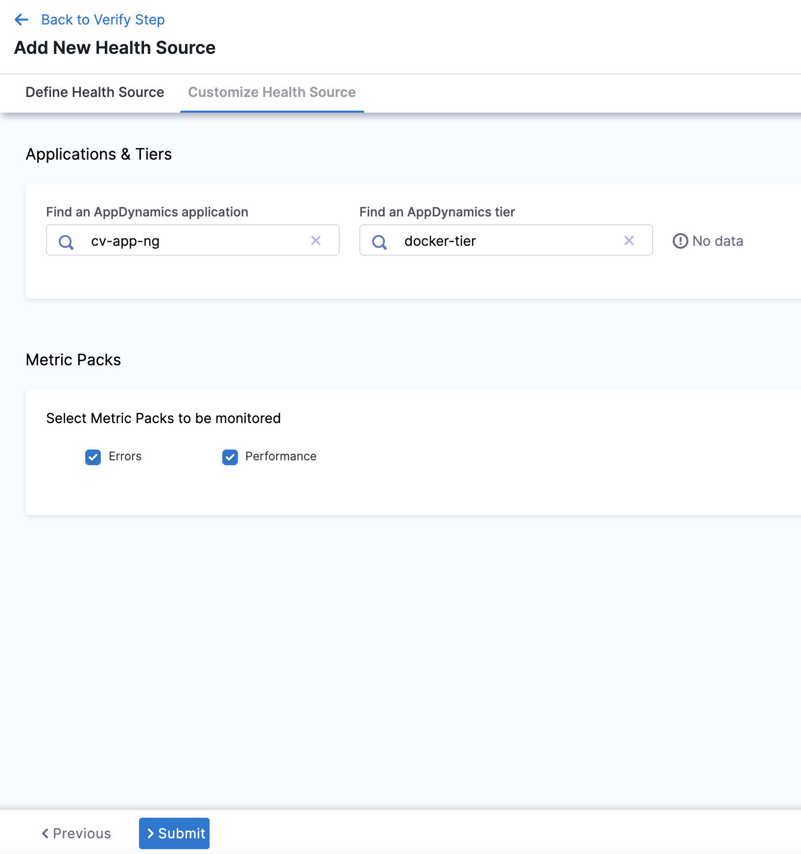 Configure AppDynamics as health source