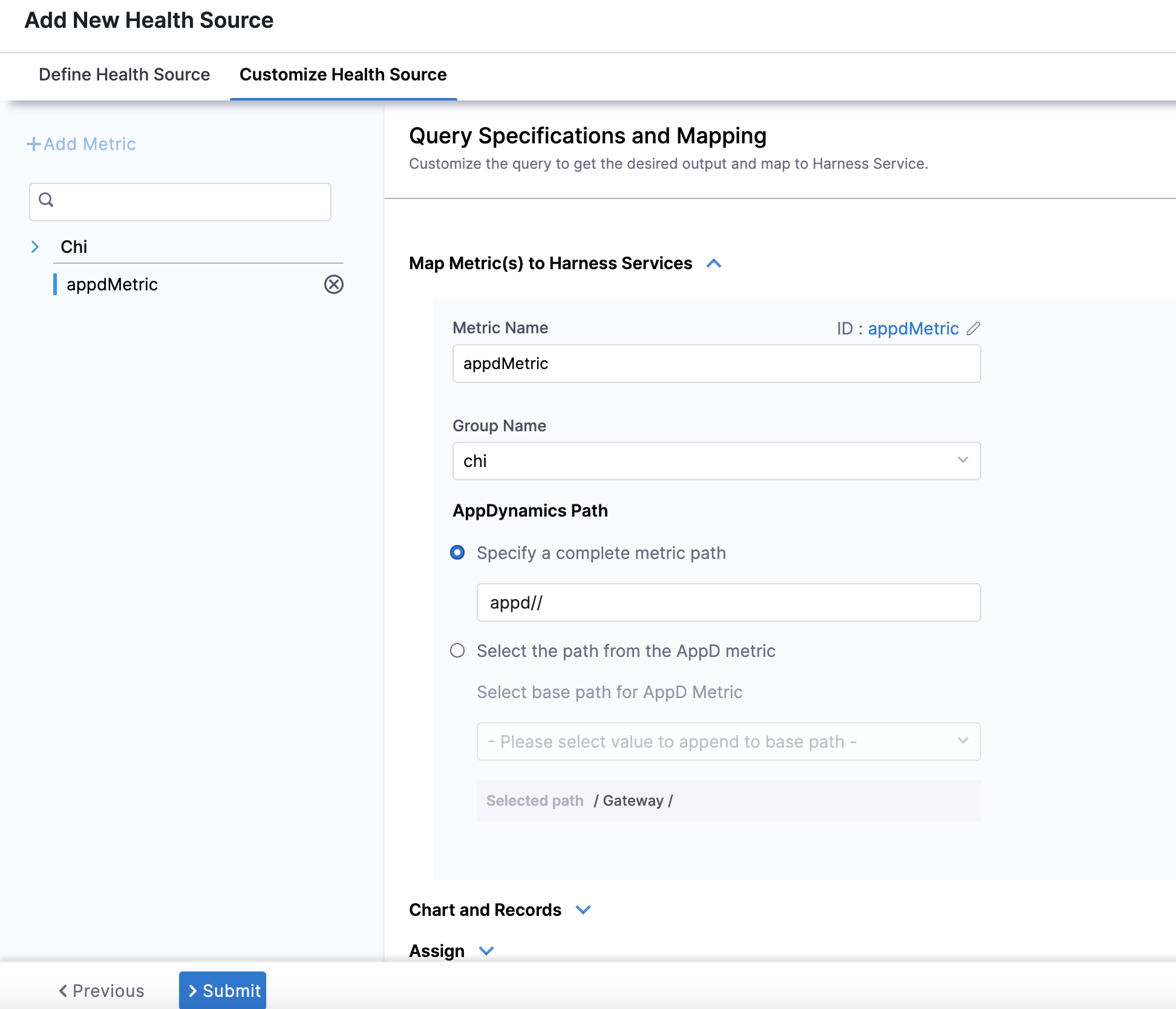5. In Map Metric(s) to Harness Services, in Metric Name enter a name for the metric.