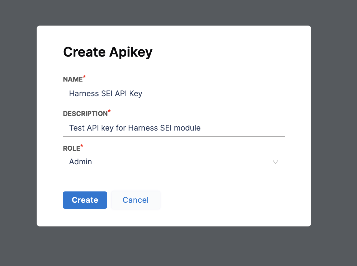 Harness SEI APIs use module-specific API keys to authenticate requests. Currently, you can only create API keys for your personal account.